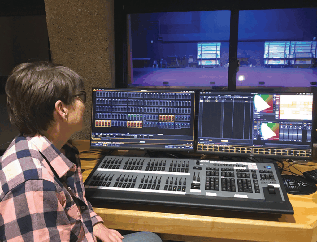 Heidi Korstad, Edge Center technical director, sits at the new light board