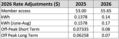 Our Board of Directors passed the 2026 budget. The 2026 rates are below.